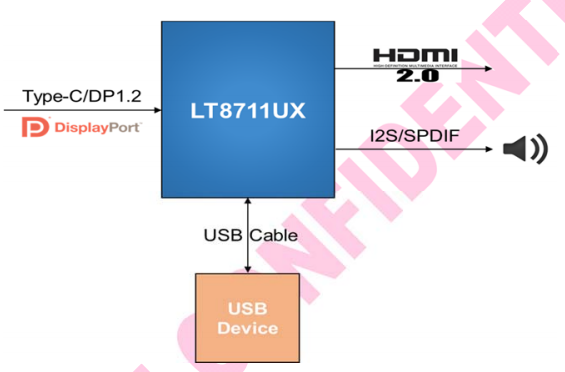 The LT8711UX is a high performance Type-C/DP1.2 to HDMI2.0 converter, designed to connect a USB Type-C source or a DP1.2 source to an HDMI2.0 sink.
