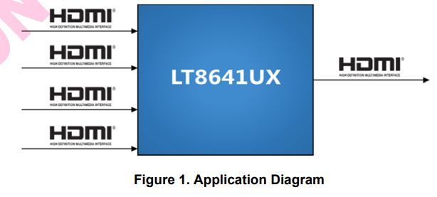 The Lontium LT8641UX HDMI2.0 Switch features a 4:1 switch compliant to HDMI2.0/1.4 specification, max 6Gbps high speed data rate, adaptive equalization RX input and pre-emphasized TX output to support long cable application, no XTAL and 1.2V power supply on board to save BOM cost, internal TX lane swap for flexible PCB routing .