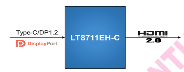 The LT8711EH-C is a high performance Type-C/DP1.2 to HDMI2.0 converter, designed to connect a USB Type-C source or a DP1.2 source to an HDMI2.0 sink.