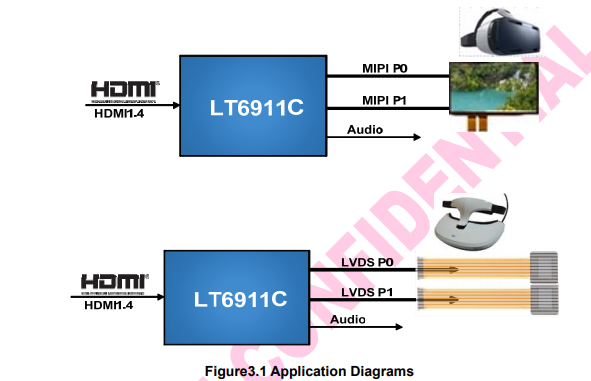 功能:HDMI 1.4 to 2 port MIPI /LVDS