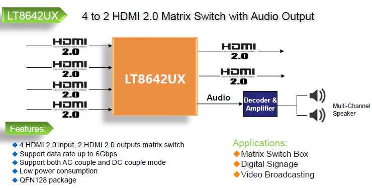 LT8642UX-HDMI2.0 4進2信號發送器